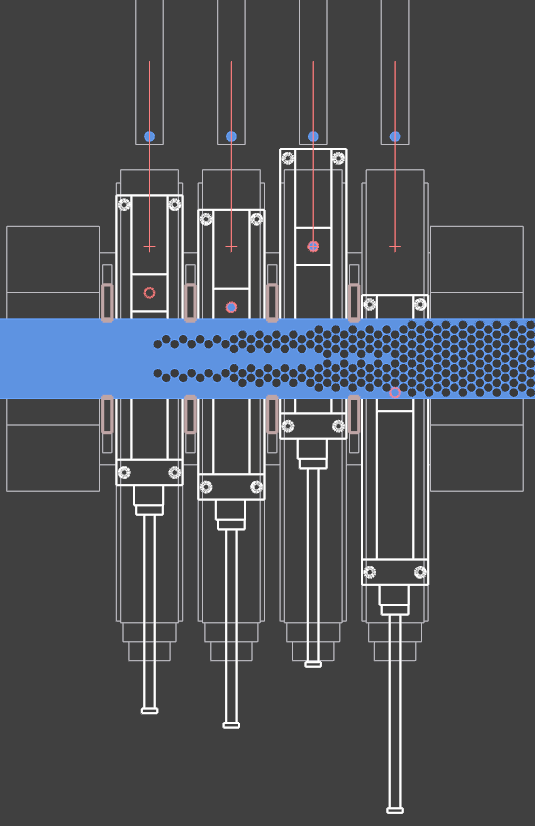 Während der Verfahrbewegung von Band/Profil und Werkzeugservoachse wird das Werkzeug im Schlitten oder das Werkzeug im Modul mit dem entsprechenden Stempel bzw. der entsprechenden Stempelgruppe für einen oder mehrere Pressenhübe aktiviert. Die hohe Anzahl permanent verfügbarer Werkzeuge und die hohe Dynamik des Systems bieten höchst mögliche Flexibilität bei gleichzeitig hoher Produktivität innerhalb eines Fertigungssystems..